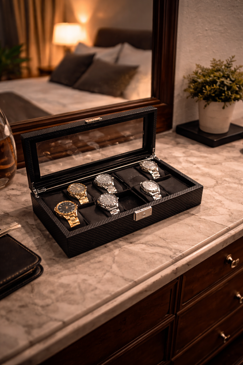 The Carbon Brazed Watch Case is designed to securely hold multiple watches while keeping each piece properly spaced and protected.